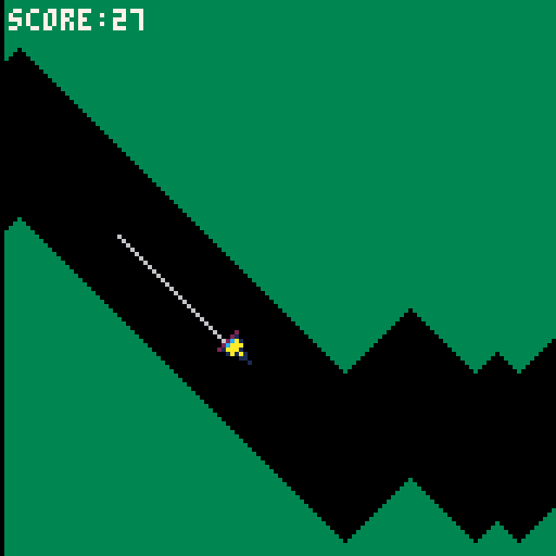 Press UP to switch directions. X to restart if you crash. Portals occur every 500 points and either increase or decrease difficulty.